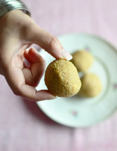 Each laddu weighs about 50 grams.